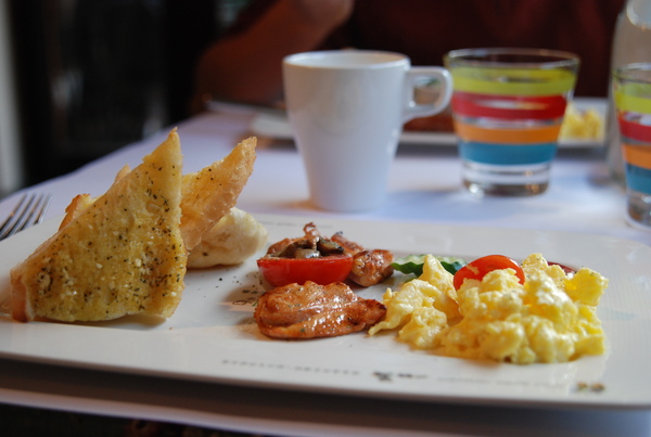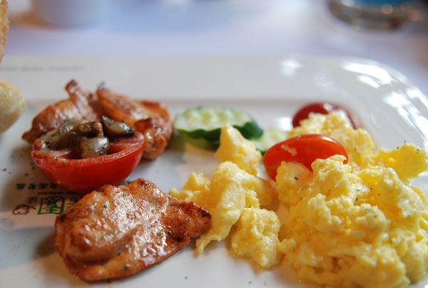 綠芳園的早餐很簡單,四種菜單,兩種價位(140元和160元),我們點的是160元的活力早餐和陽光早餐,看起來還算精緻,但分量並不多,如果要當假日早午餐吃可能會略嫌不夠,餐前會有一杯熱牛奶或柳橙汁,餐後則是咖啡或茶。