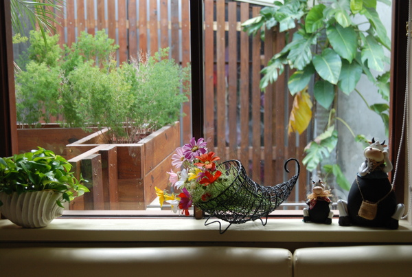 這店是個獨棟的兩層樓建築,有個很大的庭院,我們坐在窗邊的位置,透過玻璃照進來的冬日陽光,灑在身上很舒服,用完餐後,翻翻雜誌,喝口咖啡,忙裡偷閒的週六早晨,對我來說真的是珍貴又美好!