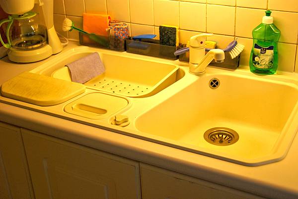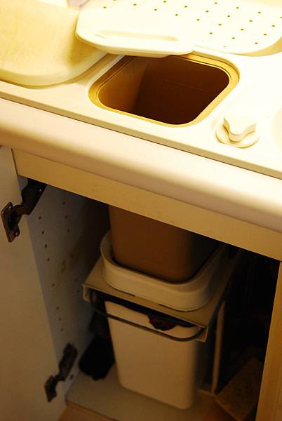 流理台上直接可以倒廚餘的桶子,很方便