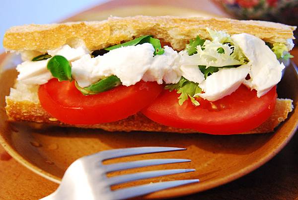 拿它來當主食,早餐吃了,午餐再做個像這樣的三明治帶出去(番茄、生菜、火腿、莫