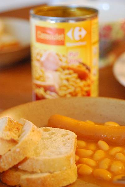 在超市裡發現英國食物燉黃豆),也買回來試試,只是這個裡面還加了熱狗,我還是喜歡