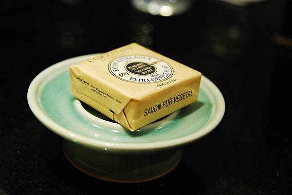 四季的房間擺設其實中規中矩,端正而沉穩,但細節處注意的很好,King size雙人床很舒服好睡,而且乾淨的讓人有種放心的感覺。房間內的器具都有講究,迎賓水果盤、皂盤,都是淡淡湖水綠的細緻陶器,手感溫潤,典雅但不奢華。沐浴用品是歐舒丹的,每天皆會貼心的補上新品。