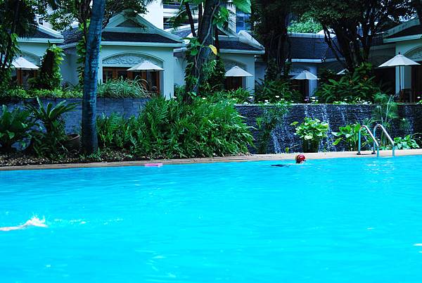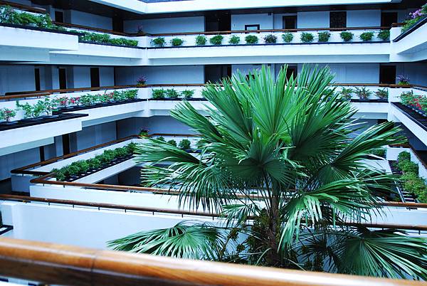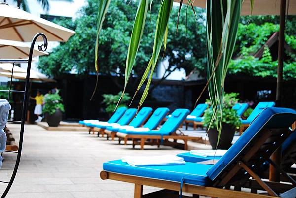 住在這兒,逛街好方便,按摩也很方便,但一回到飯店裡,就舒服寧靜的讓人忘了身處都市。中庭裡有大片的綠意包圍,空氣乾淨清爽,以致於我們雖然知道有好多行程要走,卻還是在旅行的開端,就忍不住慵懶的留在飯店裡,吃飯、閒晃、游泳、小憩,讓時間偷偷溜走。在這裡,日跟夜,緩跟急,界線都變得模糊了……..