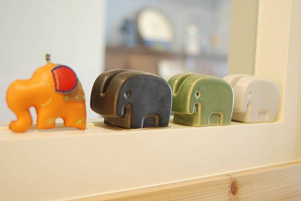 餐檯上面放了咖啡機,一盞溫暖的小立燈,就是一個有味道的角落,窗台上是我們從曼谷揹回的大象群,泰國人把大象做的好可愛啊!!