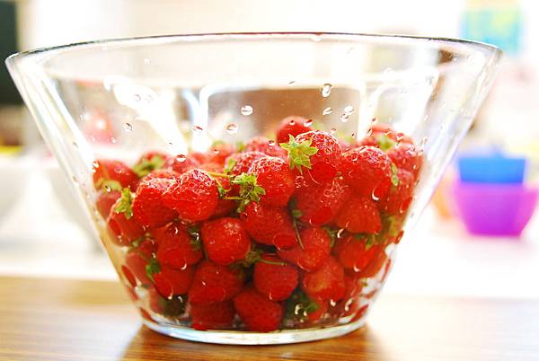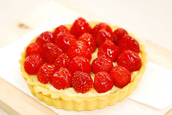 這草莓塔,就是這樣的感覺,烤好的塔皮擠上卡士達醬,然後,就盡情任性的排上紅紅豔豔的草莓吧,一顆一顆鋪得滿滿都是,千萬別留下縫隙。就像小時候一直的願望,希望一整個冬天,可以無止無境的吃著漂亮又可口的紅紅果實,夢裡都會笑呢!