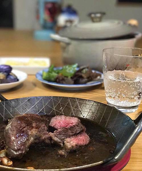 6.上桌,開動(我把牛排放回粗獷土克中再上桌)