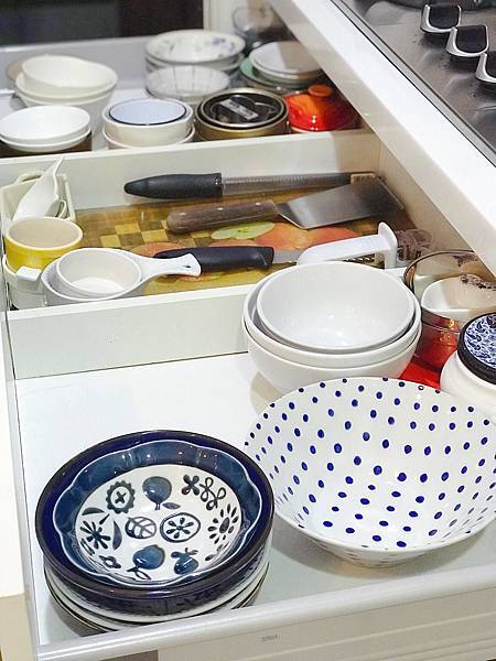 (重新整理過的廚房,多出好多空間,可以再買美麗的新餐具了嗎?)