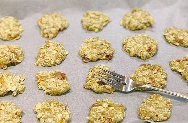 用叉子壓平,送入預熱180度的烤箱,烤十五分鐘