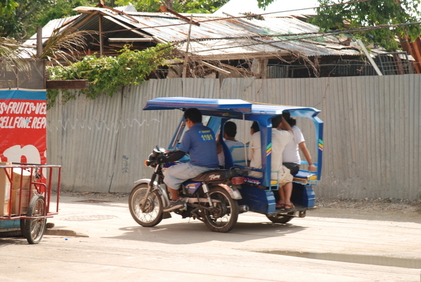 ㄅㄨㄅㄨ車還分成藍色和黃色兩種,據事前得到的消息,這兩種顏色的車是輪流當公車使用的,也就是說有些日子當地人會坐小藍、有些日子是坐小黃,如果不想被坑,最好和當地人使用同一種顏色的車。不過我們實際的經驗,似乎沒有分的那麼清楚,兩種顏色都還是有人坐,但觀光客和當地人的價錢不同到是真的,當地人坐一段路是公定的七塊錢匹索(菲幣),觀光客就得喊價了,我們最常坐到的是一人十塊,有時路程比較遠,司機會喊一人十五,就憑當時的心情決定要成交或是再等下一輛囉!
